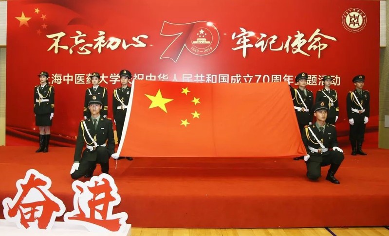 国庆节当日,101日上午730分,为庆祝祖国母亲生日,色情动漫 研究生党总支参加了校党委组织“不忘初心、牢记使命”主题教育,师生共聚校体育馆,于800分,开始升旗仪式,奏唱国歌,喜迎国庆。随后,色情动漫 党委书记曹锡康,校党委副书记、校长徐建光为获得“庆祝中华人民共和国成立70周年”纪念章的代表颁发纪念章;16位“星火红色基因”大学生讲解员们从初心、担当、使命三个角度发表慷慨激昂的爱国演说。