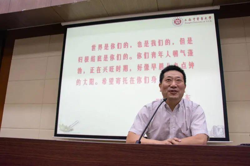 讲座正式开始之前,学院党委副书记沈漫表示了对全体新生同学的欢迎,恭喜近300位萌新考上了自己心仪的大学。而后,沈书记依次介绍了新生辅导员,希望各位新生同学在学院和各位老师的带领下迅速成长,成为合格的中药事业接班人!