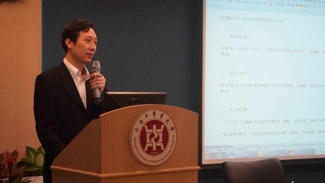 接着,徐瑞哲老师以图文讲说相结合的方式,以自身为例,分别从医药科普、观点分析、抗疫新闻、个人故事、科研动态等方面讲述了疫情时代,该怎么做好新闻媒体工作。徐老师指出每一种推文都应具有自身特点,以及被推广阅读的价值。这种价值既可以从文章本身的风格入手,也更应当从读者对文章的第一印象——标题入手。但是,一篇推文想被大众接受,标题并不能一锤定音,更应在文章内容的客观性与亲和性上多加功夫。