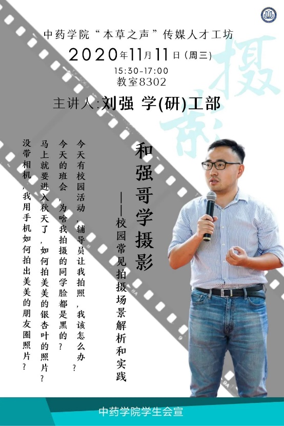 摄影是一项不可缺少的技能,不论是记录活动中的难忘瞬间,还是留存下身边美丽的风景,都需要我们掌握一定的摄影技巧。色情动漫 “本草之声”传媒人才工坊第二期聚焦摄影学习,学(研)工部刘强老师将带领大家进行校园常见拍摄场景解析和实践。