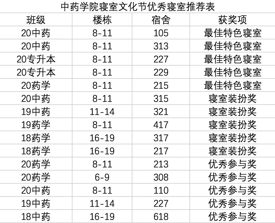 下面来公布一下,在众多寝室中脱颖而出的优胜寝室都有哪些呢?