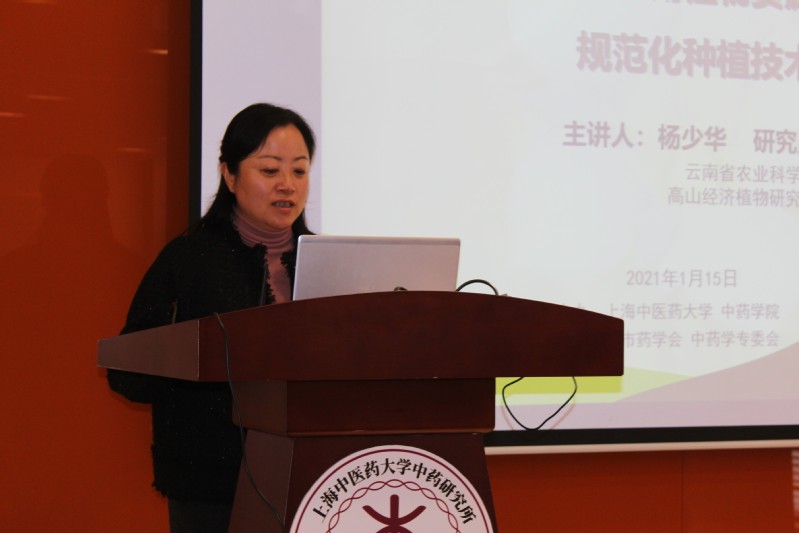 讲座正式开始,杨少华研究员作了题为“云南丽江高山药用植物资源及道地药材规范化种植技术”的报告,围绕云南的地形、气候等自然条件、自然资源普查等方面介绍了丽江的植物资源以及其团队所作的一系列工作,包括丽江市中药资源普查、药材市场走访、标本制作以及重点品种调查等。以云木香为例,介绍了道地药材规范化种植技术的研究,从品种溯源、基地生态环境及种子质量检测、到规范栽培管理过程作了大量细致的基础工作,最终通过了国家GAP认证,并通过开展培训,将云木香的规范化种植科普给种植农户和生产管理人员,真正让科研服务于生产。讲座内容也引起了线上线下师生的极大兴趣,纷纷通过问卷、现场提问的方式与杨少华研究员交流,互动氛围热烈。