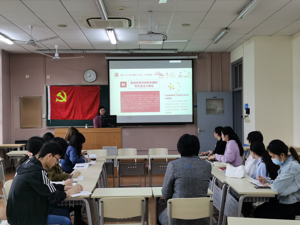 余群同志和杨云同志从“建立中国共产党—中华人民共和国成立—推进改革开放和中国特色社会主义事业”三大历史性事件入手,向在座的党员同志阐述了中国共产党历史上的三大里程碑.每一段党史都记载了我们党领导人民群众艰辛探索、顽强奋斗的辉煌历程,凸显了中国共产党人不屈不挠、开拓进取的强大正能量。我们在学习党史过程中要深读悟透党史,深刻认识党的根本宗旨,深刻领悟党的革命精神,内化于心,外化于行。
