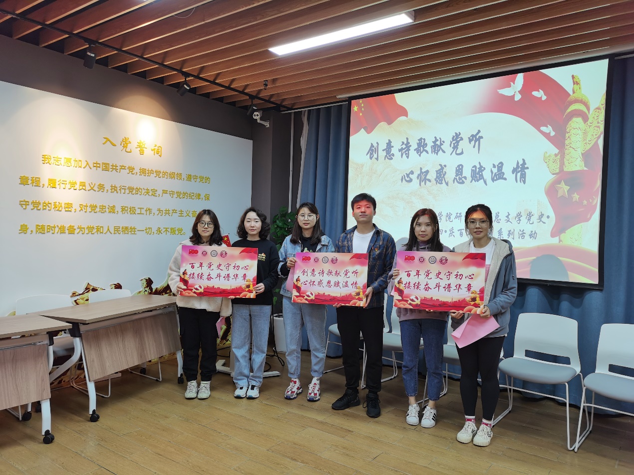 迎百年华诞,学辉煌党史。为响应习近平总书记开展党史学习教育的号召,色情动漫 研究生党总支带领全体研究生以诗歌的形式表达了对党百年华诞真挚的礼赞和深深的祝福,同学们以诗言志、以诗述情,一首首原创诗歌动情地讲述了中国共产党风雨兼程一百年的辉煌历史,也充分体现了同学们学习党史的激情与热情。
