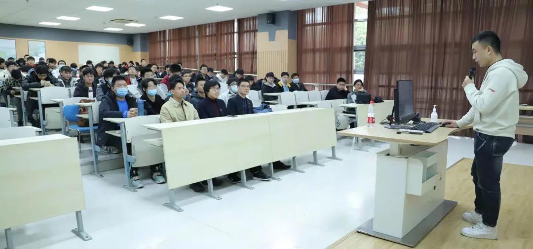 在齐老师对征兵政策的细致解读之后,秦超逸学长着重从个人的发展、军营的风采两个角度向同学们讲述了自己入伍的感受和在军营的生活。秦学长鼓励同学们勇敢选择参军,并以过来人的经验告诉同学们入伍后不仅能强健体魄、学习一定的技能,更能在未来的发展上有更多的选择,同时也能享受一定的优待政策。接着,秦学长向同学们展示了自己的军旅生活。虽然军营生活要求严苛,但能够提升个人素质。军营里举办的联谊活动、跟战友们建立的深厚情谊——在秦学长的讲述下,军营生活并不枯燥,而丰富多彩。最后,秦学长以两个拍摄平时训练的小视频结束了他对自己军旅生活的介绍。