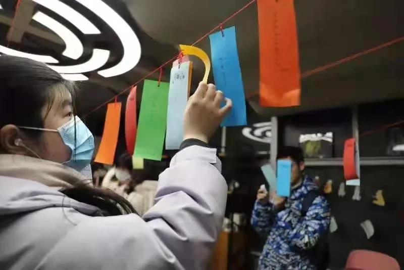 新的一年怎么能不许愿呢,大门口的新年许愿墙邀您留下墨宝。同学们在工作人员处领取许愿条,纷纷提笔写下自己一年来的所思所想,对彼此的祝福和心愿,新年的小目标。祝大家都美梦成真,运气爆棚。