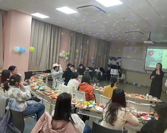 这时,王盼老师也加入到大家庭中,参与了《击鼓传花》游戏,首先由主持人介绍规则并将手里的“花”随机抛给了后面的同学,第二位同学流利对接,“花”一瞬间成了烫手山芋。巧合的是,“花”最后停留在了王盼老师手里,抽取了“用脸吃奥利奥”的小小“惩罚”,同学们纷纷拿出手机记录这个难得的画面,虽然只有二十几个人,但每个人在此时此刻都感受到了家庭的欢乐和温暖。然后,王盼老师向同学们分享了自己的趣事,并表达了新年祝福,同时还强调了安全问题,提醒大家在玩的过程中也要牢记安全注意事项。