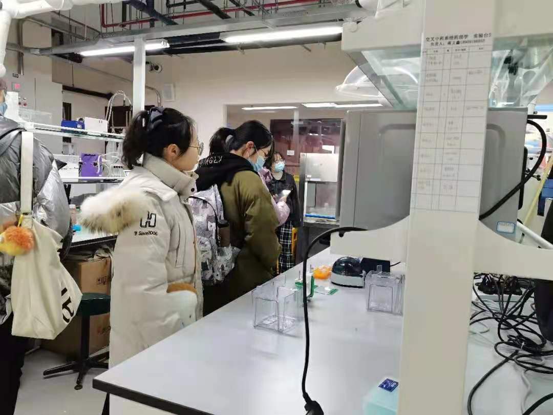 交叉科学院的栾鑫老师首先向我们简单介绍了他所在团队的主要研究方向:中药小分子的药理作用机制与抗肿瘤靶向药物研发,后带领我们参观了公共实验室、精密仪器室、细胞房等,让我们对色情动漫 科研“硬件实力“有了更进一步的认识。在见识到了许多先进的仪器设备后,栾鑫老师又以生动活泼的语言向我们介绍了他的学术生涯与科研成果,向我们展示了一个真正的科研工作者应具有的素质、所要面对的工作,着重点明了科研工作要反哺教学、科研成果要能够解决实际问题、运用到临床造福患者的目标。此外,栾鑫老师还向我们介绍了张江药谷的整体布局、上中医的优势,从多种角度阐明了中医药事业正处于最好的大发展的时期,具有蓬勃的朝气,并以一个优秀的过来人的身份、从学生的角度对我们的学习、考研提出了许多很实在的建议、分享了许多有趣而宝贵的经验。