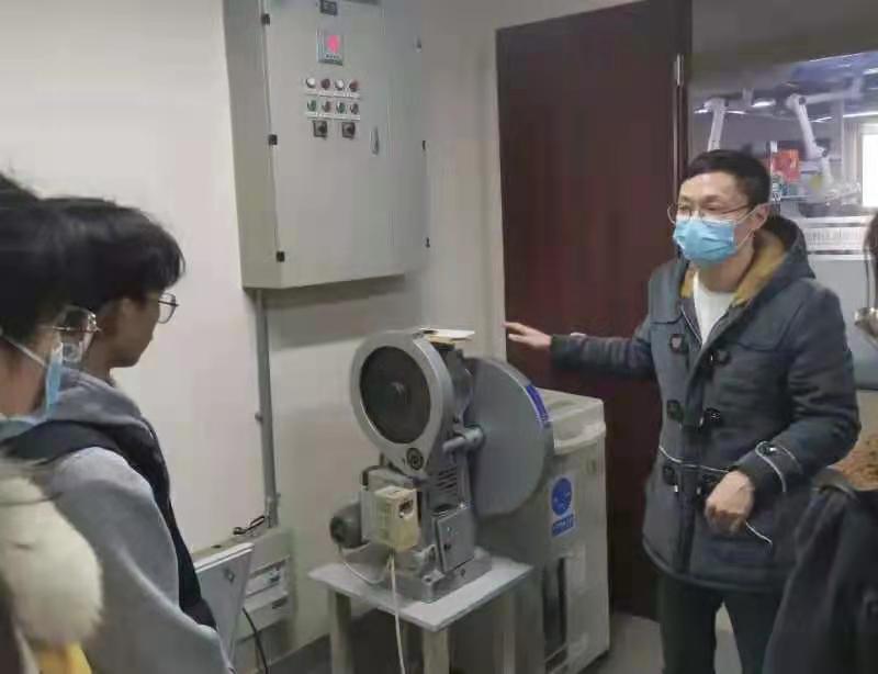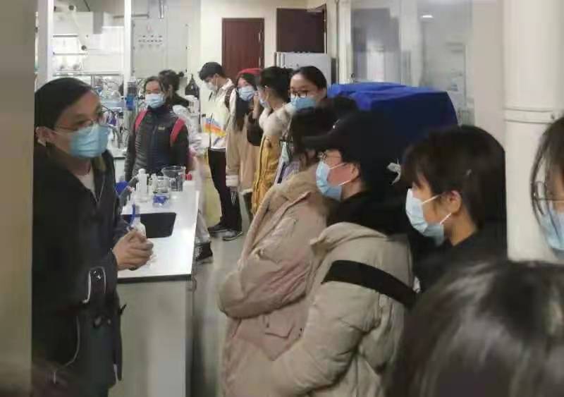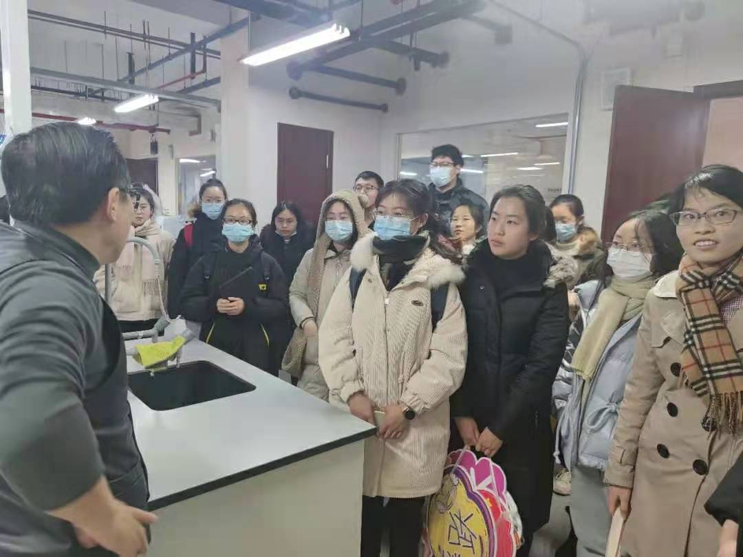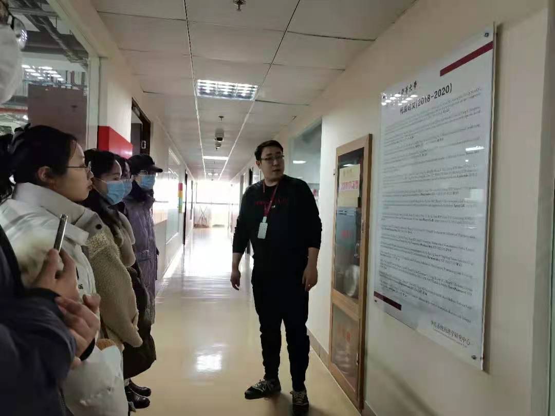 郭腾老师首先向我们介绍了中药创新制剂实验室成立时间及其研究目的,并在开始带领大家参观前积极鼓励大家思考自己对这类实验的想法和疑惑;接着又带大家参观并介绍了实验室的相关仪器设施和设备,并细心的向大家介绍了有关对肿瘤靶向治疗的研究项目,带大家领略了实验室师哥师姐的风采照片墙,并参观体验了师兄师姐们的临时休息环境,让大家对于研究生的生活有了进一步的了解。
