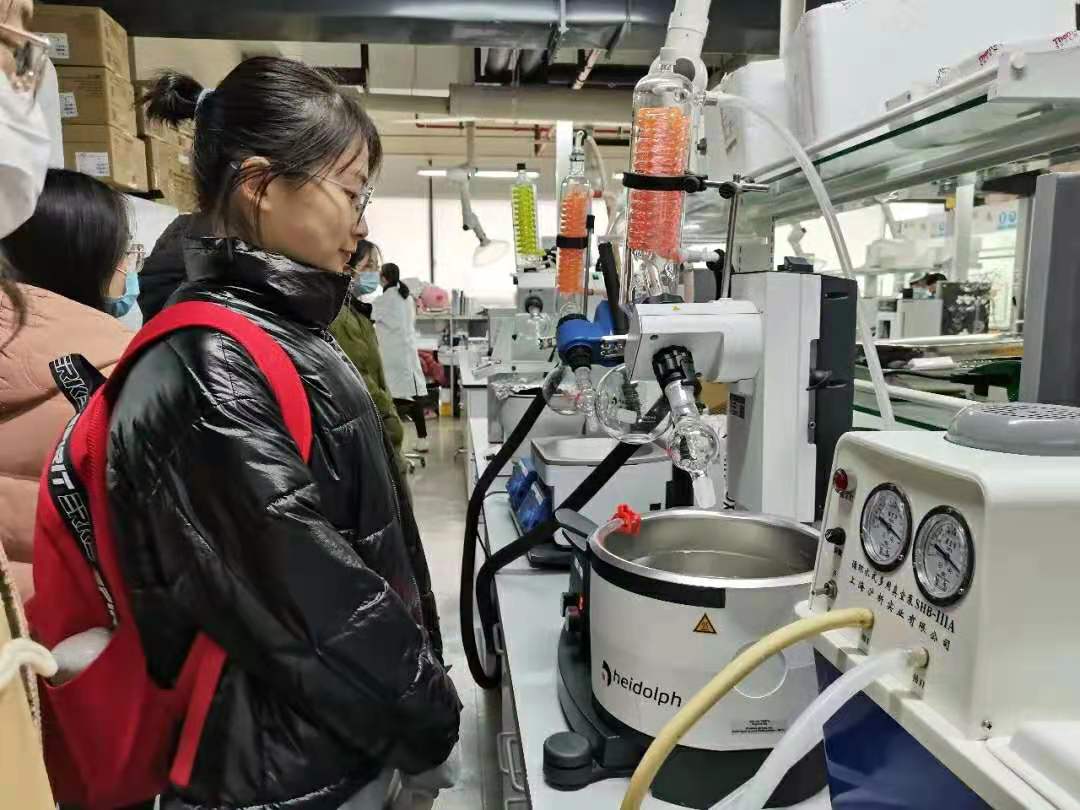 在班主任郭腾老师和辅导员王倩倩老师、夏晴老师的带领下,在实验室老师及师兄师姐的引导下我们有序参观学习了中药创新药物研发上海高校工程中心。老师为我们介绍了徐院长所带领的团队重点研究的中药,如西红花,丹参,补骨脂,云南藤黄等等,均取得重大科研进展与成果。以及徐院长所带领的团队对经典名方的研究及成果,如由半夏,枳实,竹茹组成的温胆汤,其功效为理气化痰,清胆和胃,不断探寻其背后的奥秘与科学原理,并在其基础上创新发展。随后,老师还为我们介绍了药材重点研究项目,针对各类参等名贵药材,已有建设性成果及突破性进展。在老师的带领下,我们有幸进入实验室,简要认识和了解了各类专业设备仪器,收获颇丰,进一步开拓了眼界。