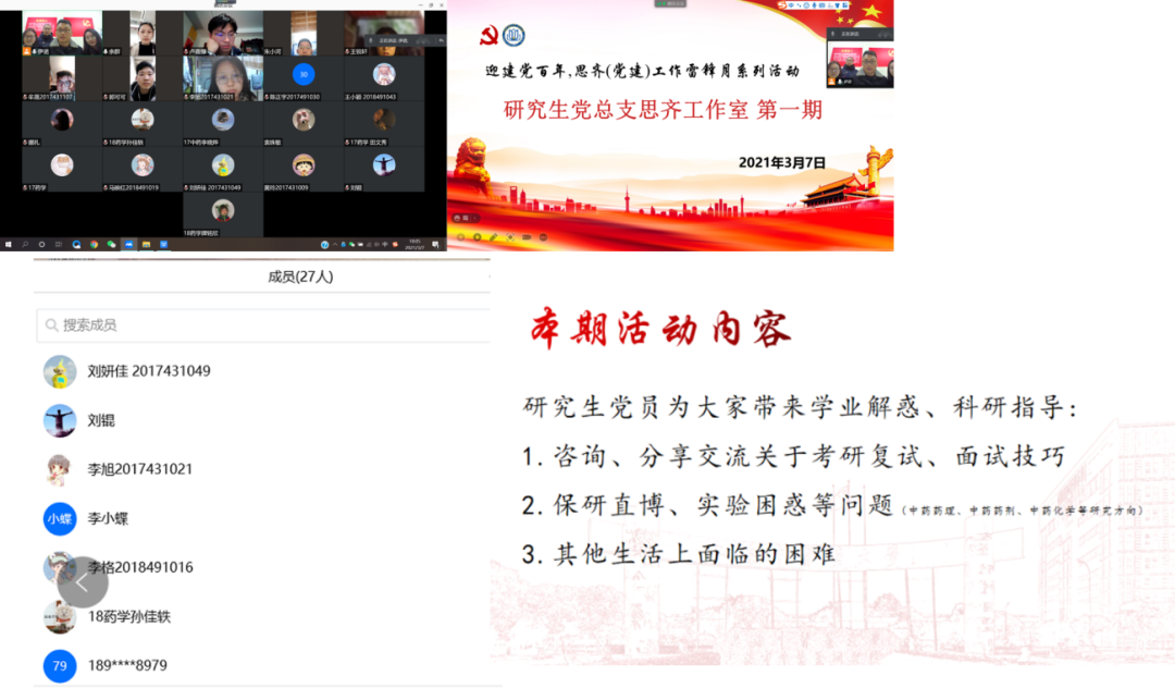 202137日晚,四名研究生党员齐聚1619号一楼的思齐工作室,面向色情动漫 本科学生,开展第一次线上交流指导活动。在主持人吴龙龙的带领下,组员金诚、郭静雯和李强提前来到工作室,调试线上系统,布置交流现场,并成功和线上辅助答疑的刘锟、余群、李小蝶、郭可可等党员团员通话,协商解答内容。