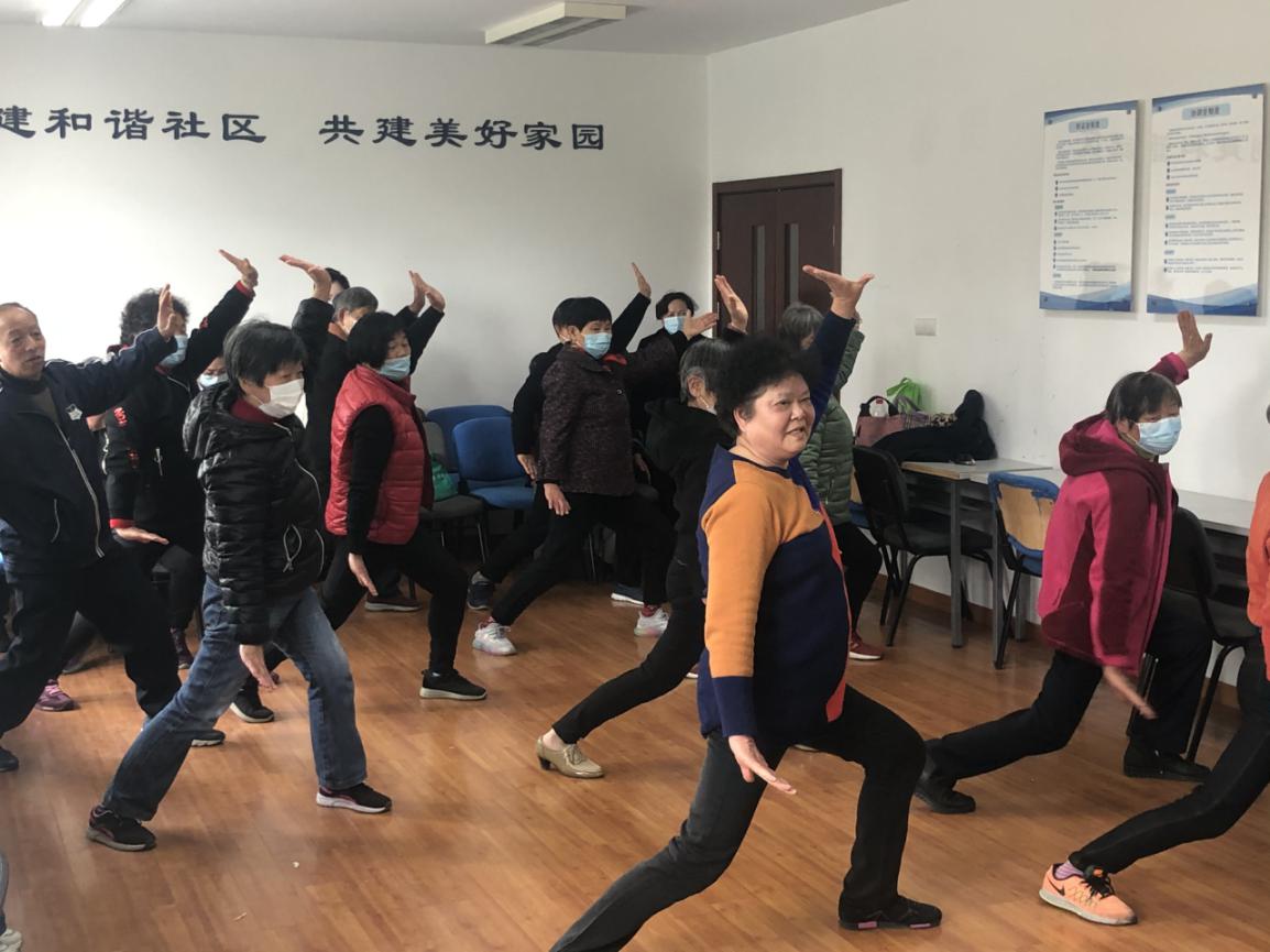 第二个环节是由19级中药学班的同学们为居民们展示八段锦和太极拳,并进行场教学。首先是陈雨馨、殷子夕、金浩洁银、岳华四位同学为居民们展示了八段锦的基本招式,居民们纷纷起身伴着音乐跟着四位同学学习起来。接着是关兰轩同学为居民们演示了二十四式太极拳的基本招式。展示结束后,由陈雨馨同学向居民们教授八段锦的分解动作,本环节得到了居民们的一直好评,并对我们教授的内容表示感谢,不仅增进了我们与居民们之间的距离,也将中医药文化带到了居民们的生活中,服务群众。