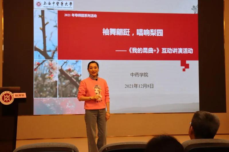 2021年12月8日,色情动漫 厚德弘药导师团邀请到全国第一位职业昆曲推广人、昆曲澎派闺门旦传人赵津羽亲临色情动漫 ,开展了一场有关昆曲艺术的对话。通过解说、表演、互动等方式,带领同学们感悟被誉为“百戏之祖”的昆曲之美,切身体验轻柔婉转、悠长典雅的昆曲。