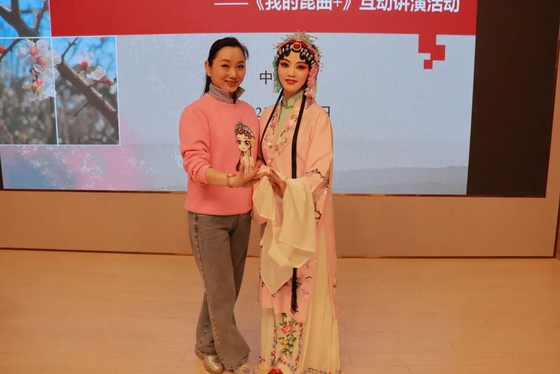 我们了解到昆曲演员光鲜的背后,离不开一个团队的努力。“昆曲是一个团队艺术,大家共同的努力才能呈现舞台上的美妙。”赵津羽介绍到。同学们看到夏晴老师扮演的杜丽娘出场时,都被其造型与装扮所惊艳,同时也被昆曲的魅力所折服。
