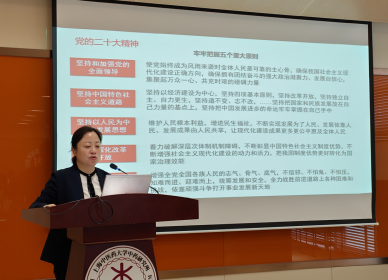沈岚同志以“凝心铸魂抓落实,深化改革促学院高质量发展”为题,聚焦坚持全面深化改革,她深入浅出地对“改革开放是决定当代中国命运和实现中华民族伟大复兴的关键一招、要牢牢把握全面深化改革的正确方向、全面深化改革要坚持正确方法论”等方面进行了分析和阐述。聚焦“全面贯彻党的教育方针,紧扣立德树人根本任务深化教育改革”,她指出,要根据学校“十四五”规划目标,进一步推动“学院办大学”改革工作,结合学院高质量发展的内涵,充分发挥党建引领作用,围绕人才培养、学科建设、教育教学等内容,进一步推动党的建设与学院中心工作深度融合,为学院高质量发展赋能增效。