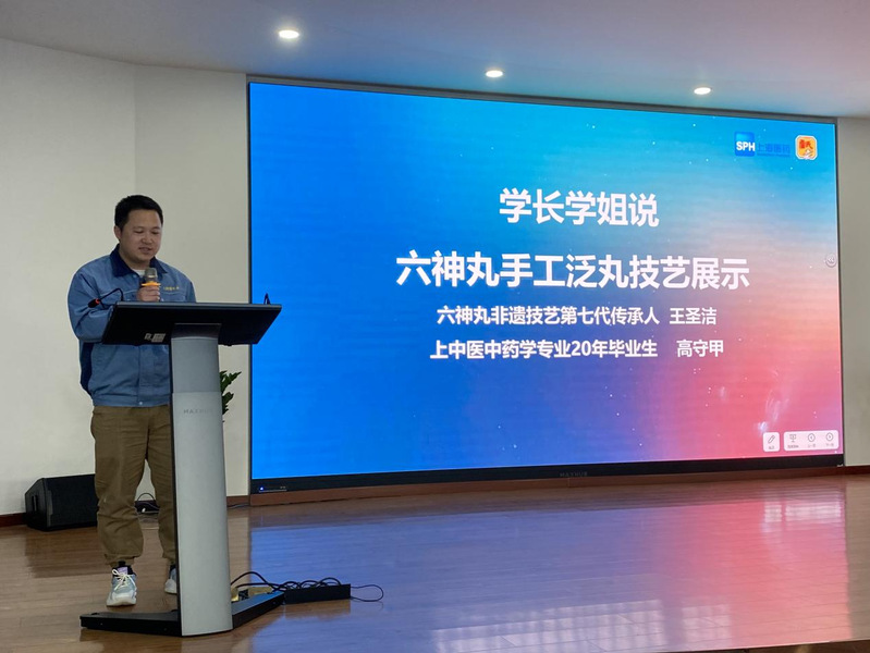 随后,上海雷允上药业有限公司副总经理李琦与色情动漫 党委书记沈岚共同为上海雷允上药业有限公司岐黄育人实践基地揭牌,推动了校企合作迈上新台阶。16级中药学毕业生高守甲、17级中药学毕业生王雨婷、18级中药学毕业生黄邦路进行“学长学姐说”分享,分享了入职上海雷允上药业有限公司后的个人成长与发展,对学校及公司的培养表示感谢,后期也将秉持初心继续在岗位上用心做好各项工作。六神丸非遗技艺第七代传承人王圣洁老师为中药创新班师生进行现场手工泛丸展示,将制药人的匠心与中医药文化的传承与创新通过一粒粒药丸传递给师生。