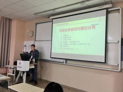 首先,张若愚为大家深入解读了实验室危化品和特种设备(压力容器)的相关法律、法规,从国家法律、法规的要求,到学院的规章制度特别强调了学校结合实际对实验室危化品的管理规定、申领流程,以及特种设备(压力容器)的管理规范等内容。