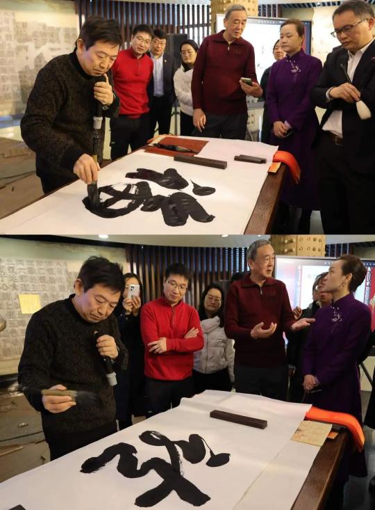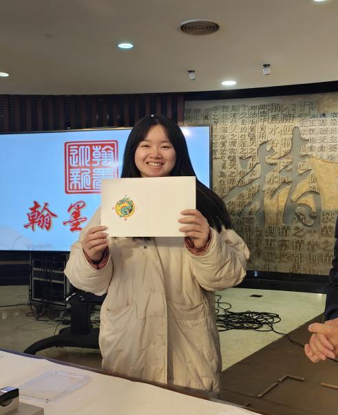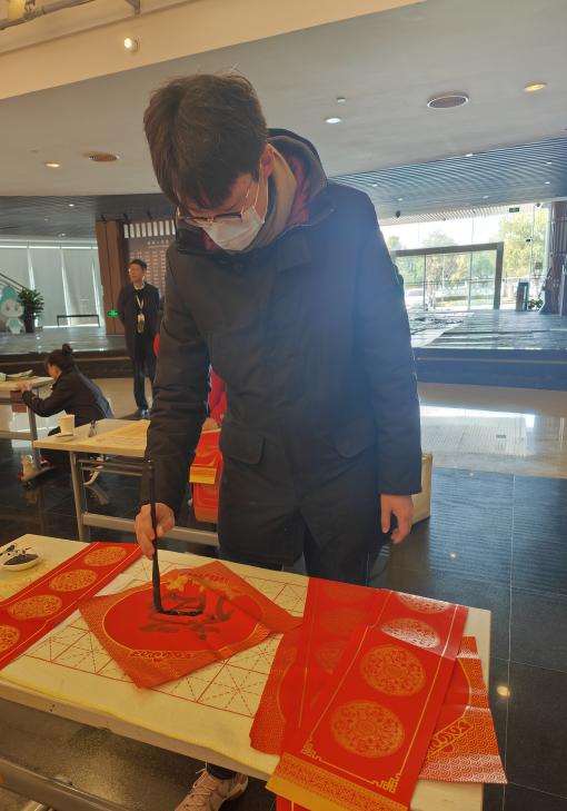 活动伊始,书画专家陆文耀启动“翰墨迎新”书法撰写活动。书法家高壁为师生们讲解握笔和运笔的方法,并现场示范书写“福”和“龙”,用浓墨倾情为师生们送上新春祝福,研究生党总支成员们也跃跃欲试,亲手书写下一幅幅迎春祝福。