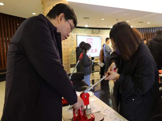 活动伊始,书画专家陆文耀启动“翰墨迎新”书法撰写活动。书法家高壁为师生们讲解握笔和运笔的方法,并现场示范书写“福”和“龙”,用浓墨倾情为师生们送上新春祝福,研究生党总支成员们也跃跃欲试,亲手书写下一幅幅迎春祝福。
