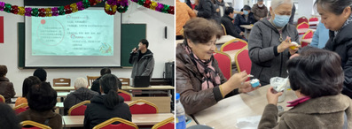 研究生党总支第二学生党支部党员谷东澔博士为居民们讲解了四季养生的知识。 “顺四时而适寒暑”,在不同的季节重点调养不同的脏腑,才能与外界环境保持协调平衡,才能拥有健康的身体。春夏养阳,秋冬养阴,春养肝,夏养心,长夏养脾,秋养肺,冬养肾。冬季养生要点包括合理饮食、合理起居运动、合理情志。顺应自然、季节的变化,做到正气、阴阳、脏腑的调养, 以良好的生活方式与优质的健康产品相互配合,呵护人体自身生命的基础。冬季气温和相对湿度低,手部皮肤抵抗力减弱,容易干燥、皲裂。党员们还和居民们一起开展了DIY制作护手霜活动。