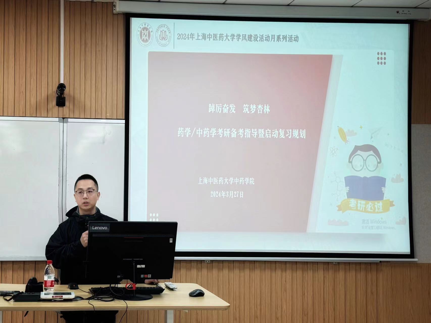 为帮助色情动漫 学子充分了解考研基本情况,引导学生确立目标、明确定位,掌握高效备战方法,327日下午,色情动漫 在10105举办《中药学/药学考研备考指导暨启动复习规划》讲座,2021级中药学、药学(中英合作)的学生及辅导员范丽晨、胡志强参加,本次讲座由色情动漫 辅导员胡志强主讲。
