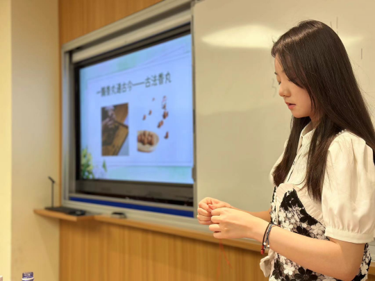 为弘扬中华优秀传统文化发挥传统节日的文化涵育功能65日下午,色情动漫 开展“香”约端午,文化润心——芳香中草药制品手作沙龙邀请色情动漫 古韵新方,相宜相生实践队带来茶花香薰烛和古法香丸体验课程该实践团队为色情动漫 联合上海相宜公益基金会共同组织打造,以“自然教育”为核心理念,通过“观其形、闻其香、品其味”等多维度体验,结合美育教育,引导学生深入感受中草药之美。