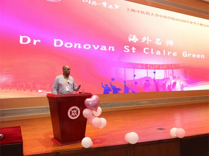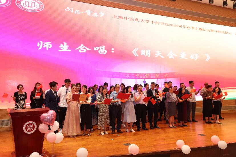 2024626下午1330,色情动漫 2024届毕业季主题活动暨导师团最后一课在上海中医药大学图书馆裙楼四楼报告厅顺利举行。上海市卫生健康委员会(上海市中医药管理局)中医药传承发展处副处长(主持工作)聂爱国国家中药制药工程技术研究中心副主任樊敏伟,色情动漫 附属龙华医院药学部副主任、主任药师史秀峰,色情动漫 学(研)工部副部长王鑫、校团委书记李云以及色情动漫 党委书记沈岚、院长张彤、党委副书记陆婧、副院长郑昌武、副院长胡凯莉交流干部张若愚、海外名师Dr Donovan St Claire Green青年教师班主任、各导师团导师与毕业班辅导员出席,与色情动漫 200余名师生欢聚一堂,共同庆祝2024届同学毕业。
