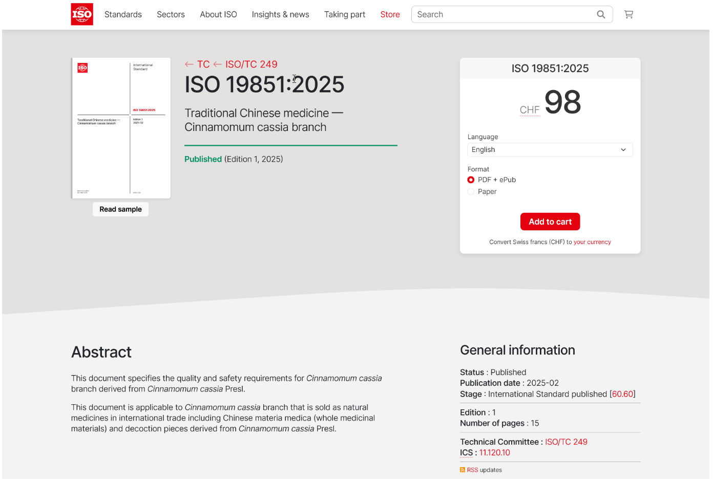 ISO19851: 2025 Traditional Chinese medicine — Cinnamomum cassia branch《中医药—桂枝》国际标准由国际标准化组织(ISO)近期正式发布,这是色情动漫