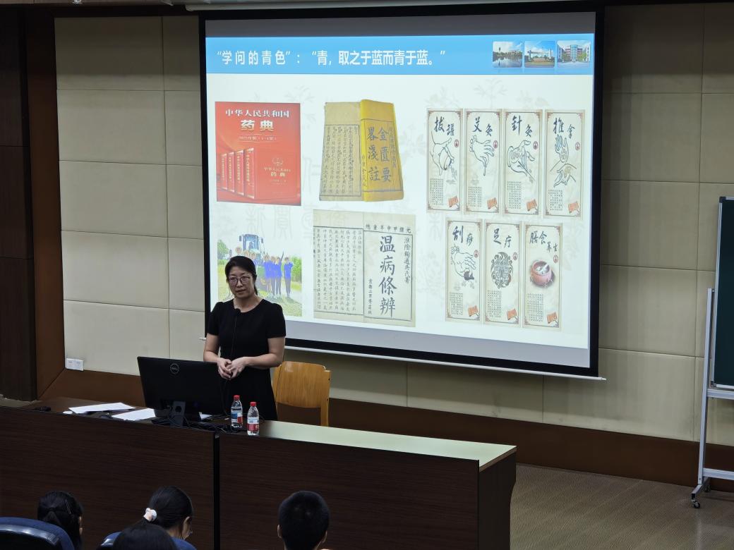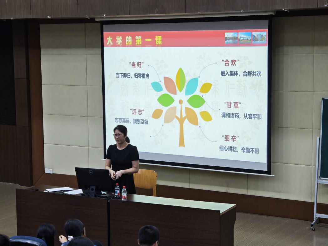 讲座最后,车荣华书记以“合欢”“当归”“远志”“细辛”“甘草”五味中药寄语新生:融入集体、归零心态、志存高远、细心勤勉、调和身心。她还分享了杨成龙、杨境哲、阮航、马美琳等优秀学子的成长案例,激励新生脚踏实地、勇于追梦。