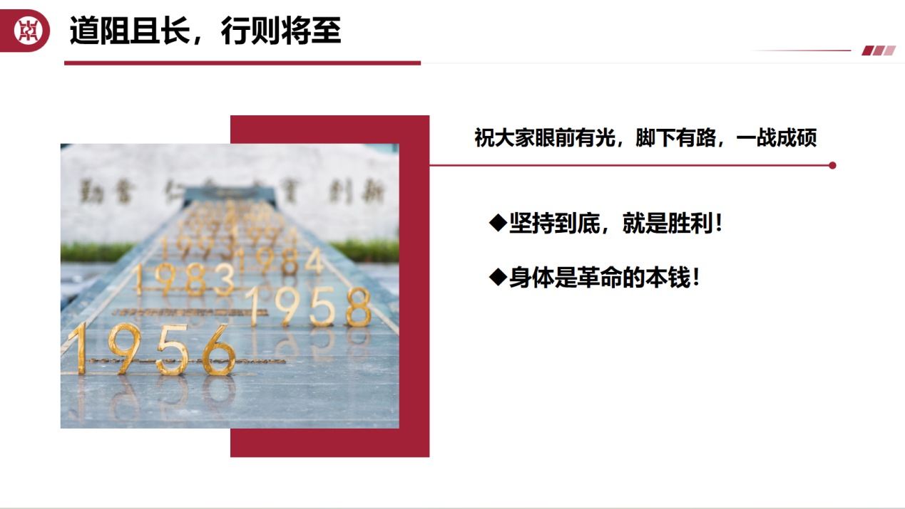 随后,薛新月同学从心理调适、复习节奏、复试策略等角度带来了切身的体会。她特别强调了“平常心”与“节奏感”的重要性,提醒同学们要科学制定每日目标,合理分配时间,在压力之下也要给自己适度的放松空间。薛同学用自身经历鼓励大家:“考研不是一场孤独的战斗,坚定与自信是最好的同行者。”