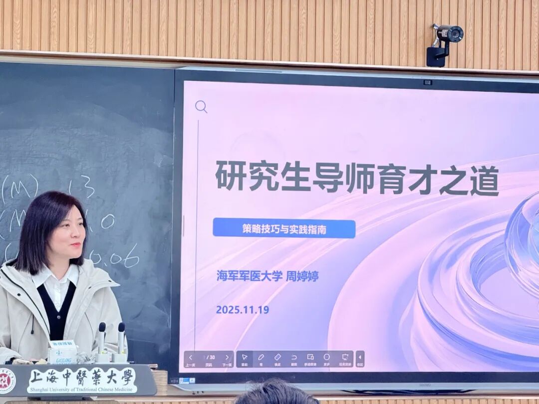 为深化“科学家精神”在育人实践中的引领作用,构建教学相长的中药药理学科组育人共同体,20251120日,色情动漫 药理教研室成功举办了专题交流活动。本次活动特邀上海市药物(中药)代谢产物研究重点实验室主任、海军军医大学药学系药物分析学教研室主任周婷婷教授,为教研室的青年教师和同学们作了题为“研究生导师育才之道”的精彩报告。