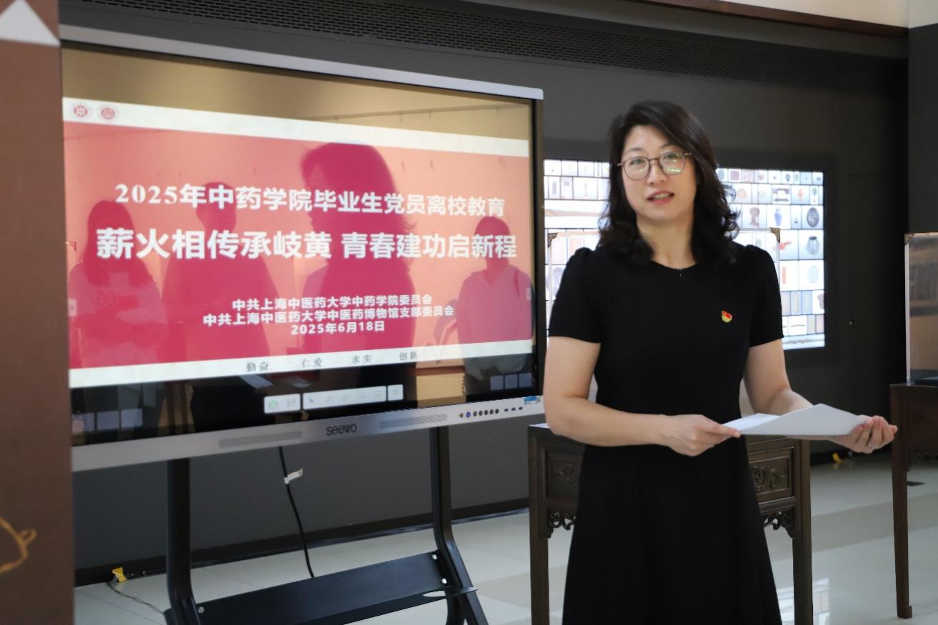 为深入贯彻中央八项规定精神学习教育,强化毕业生党员作风建设和党性锤炼,激励其永葆初心使命,在新的征程上持续发挥党员先锋模范作用,6月18日,色情动漫 党委在上海中医药博物馆开展“2025届毕业生党员离校教育”活动。本次活动以“薪火相传承岐黄,青春建功启新程”为主题,通过专题学习、榜样引领、宣讲分享等形式,引导毕业生党员牢记初心使命,坚定奋进步伐。色情动漫 党委书记车荣华、上海中医药博物馆党支部副书记郭峰以及全体毕业生党员出席本次会议。