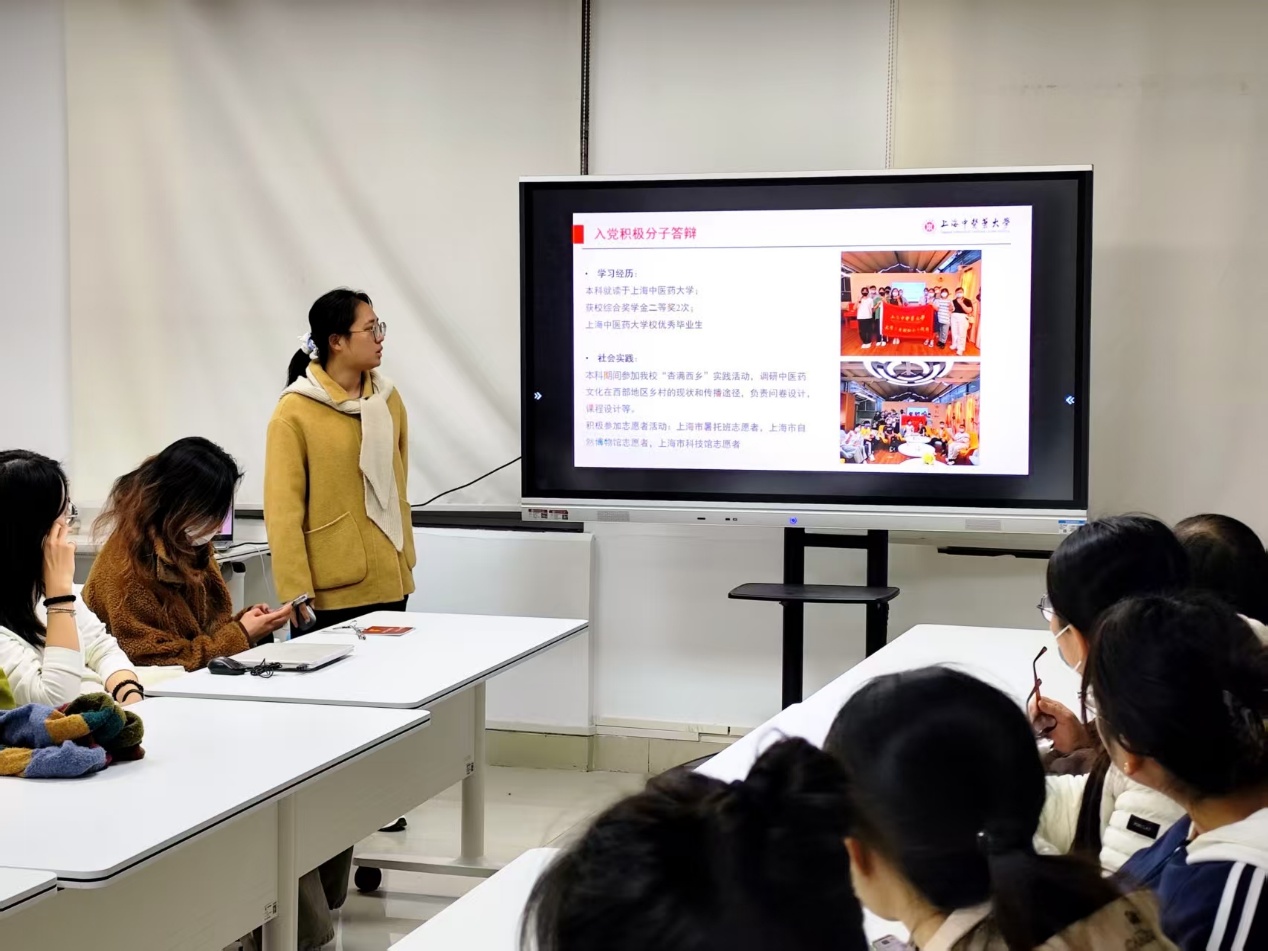 为切实做好党员发展工作,进一步规范党员发展程序,提升党员发展质量,2025年12月1日色情动漫 研究生第一党支部举行入党积极分子推优答辩会。